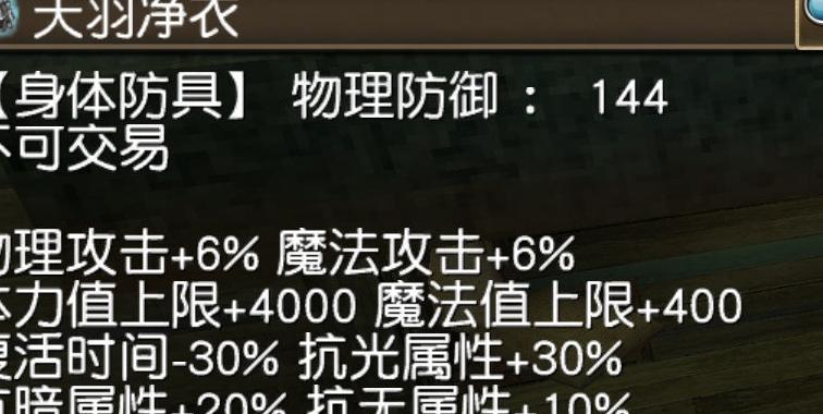 天羽净衣的属性实用性较低,面对多数混合或无属性攻击的BOSS时,其效果远不如直接提供25%双抗来得实在,适用场景较为有限。