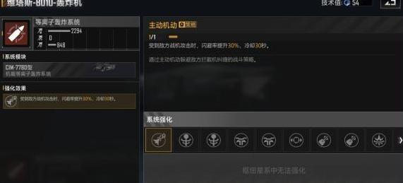 虽为对舰战机,但具备良好生存能力,拥有自动闪避功能,通过装甲系统加点还能延长敌方锁定时间。