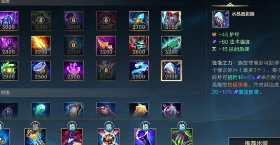 水晶反射器是英雄联盟手游中的独特装备,适合对抗物理输出英雄。当中路或打野遇到物理刺客时,可优先考虑出装,不仅能提升生存能力,还提供维迦急需的技能急速效果。