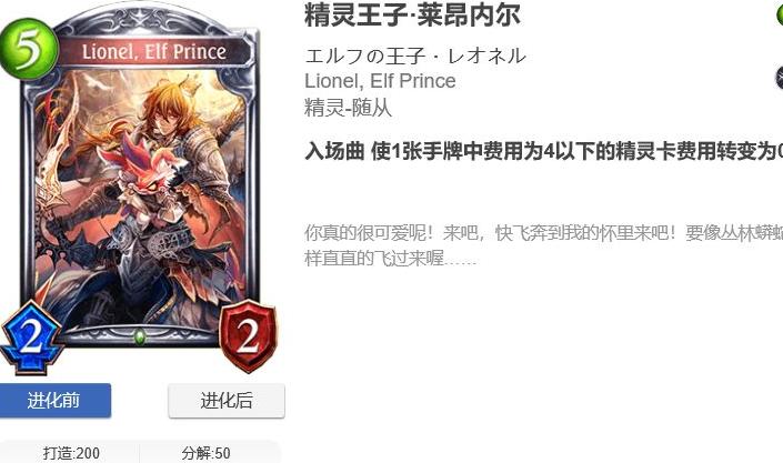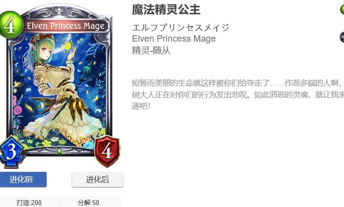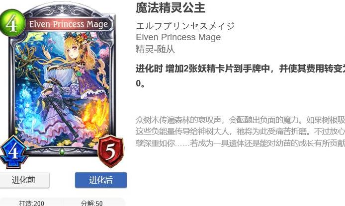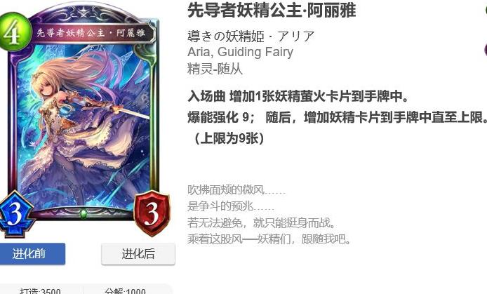满编状态(似乎被削弱后最多只能携带一张)。作为0费关键来源,相比精灵公主的优势在于其提供的两张0费妖精萤火在触发连锁后不占用场地区域。