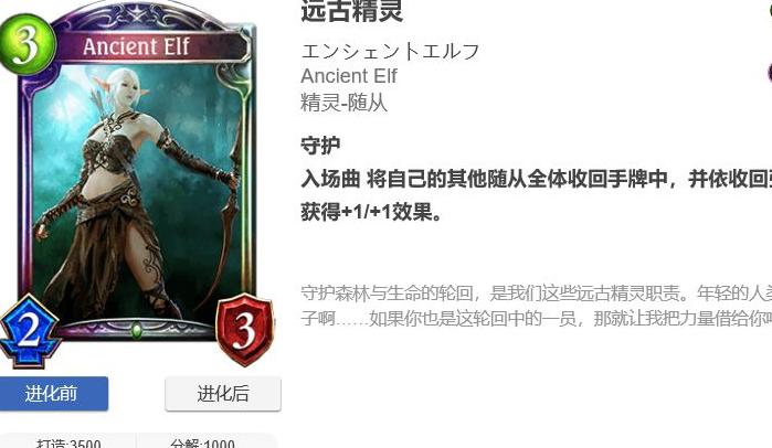 这些卡牌虽具备回手能力,但主要用途是干扰对手而非自身调度,且费用比前两种回手法术更高,因此实战中并不推荐优先选用。唯独远古精灵是个例外,建议尽可能满编携带。其核心价值在于拥有的守护属性,配合前期节奏尤为强势。试想第二回合打出两张1/1/1的妖精,第三回合接上它,便能直接站场一个3/4/5并带守护的随从。这种场面在第三回合极难应对,即便对手能够解掉,往往也要付出巨大代价。只要成功登场并触发效果,基本意味着稳定赚取场面优势,战略意义显著。