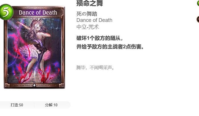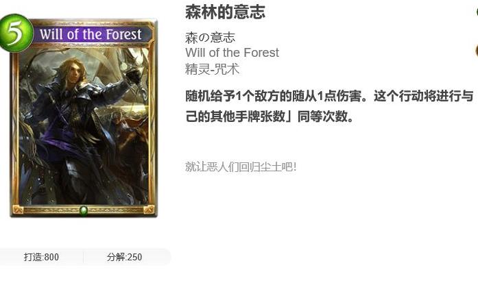 建议携带1至2张,应对棘手场面,如死灵3费8/8孩子王,或妖精6费美女与野兽(触发后变为6/7/8)等强力随从。