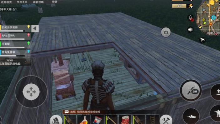 四、开始建房前需先砍伐树木获取材料。主界面左上角设有引导任务,建议按顺序完成,也可参考生存手册中的说明。遵循任务流程能逐步获得领地柜、睡袋、工作台、密码锁等实用道具,避免重复制作,节省资源,提升效率,为后续生存发展打下良好基础。