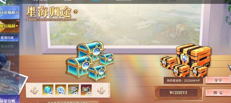 活跃玩家需让回归玩家输入星途码,随后点击主界面右下角领奖按钮,即可开启任务页面。