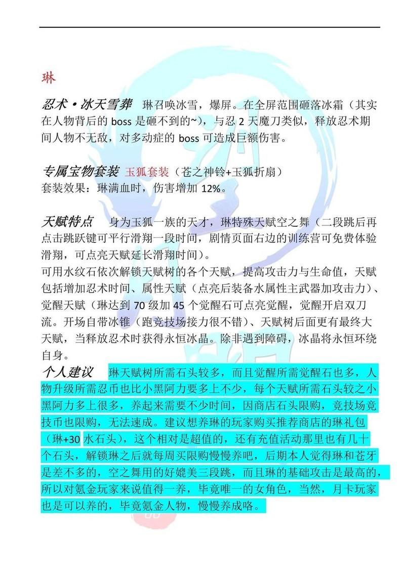 重点推荐!长期培养建议首选三段跳的苍牙,次选滑行的琳,二者择一重点培养。