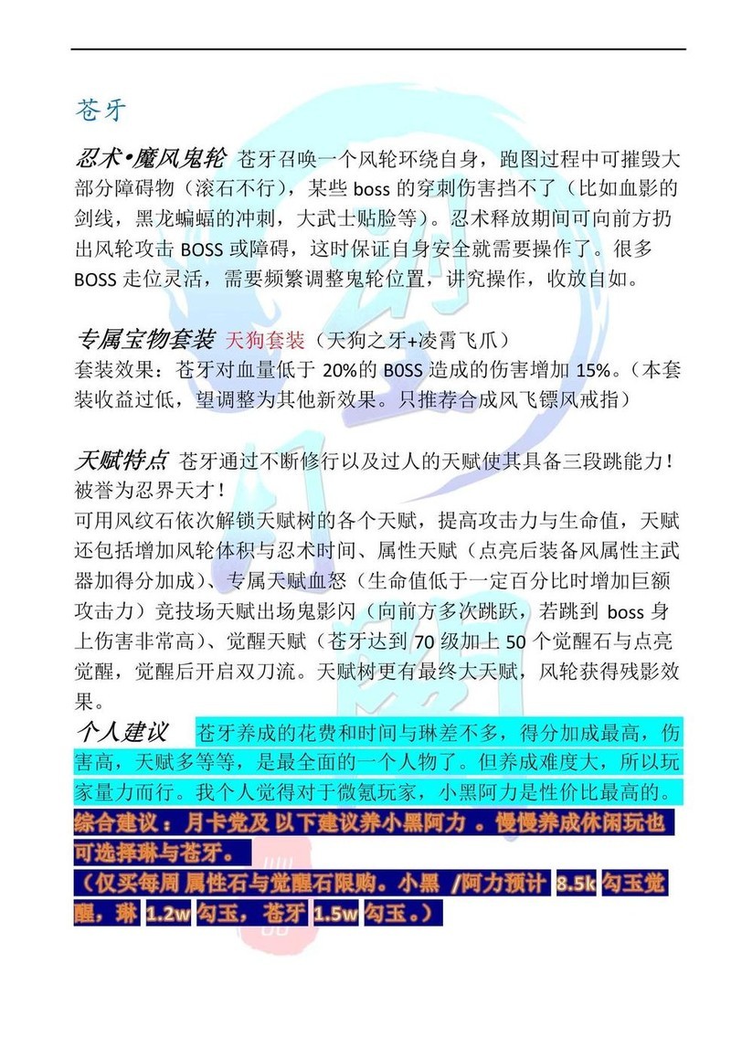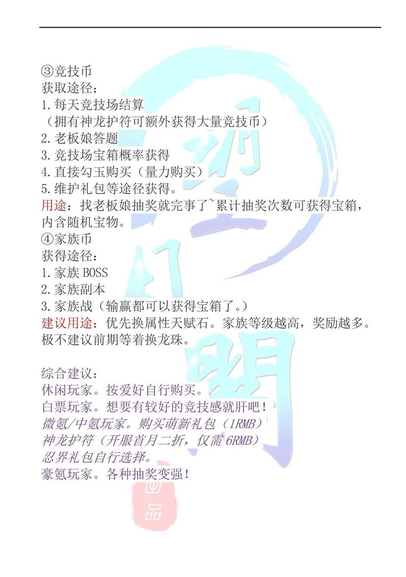 适合各类玩家,养成稍慢。休闲玩家可购神龙护符,重度投入者自行决定。