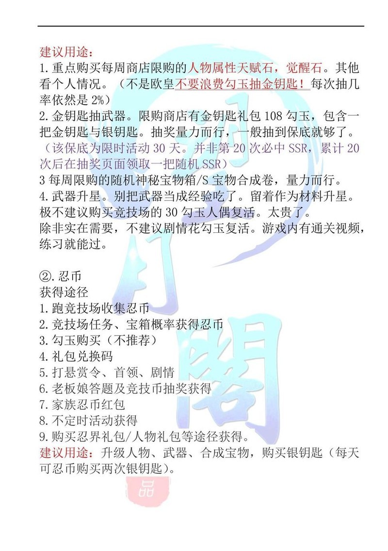 优先购买所需角色的天赋和觉醒石。