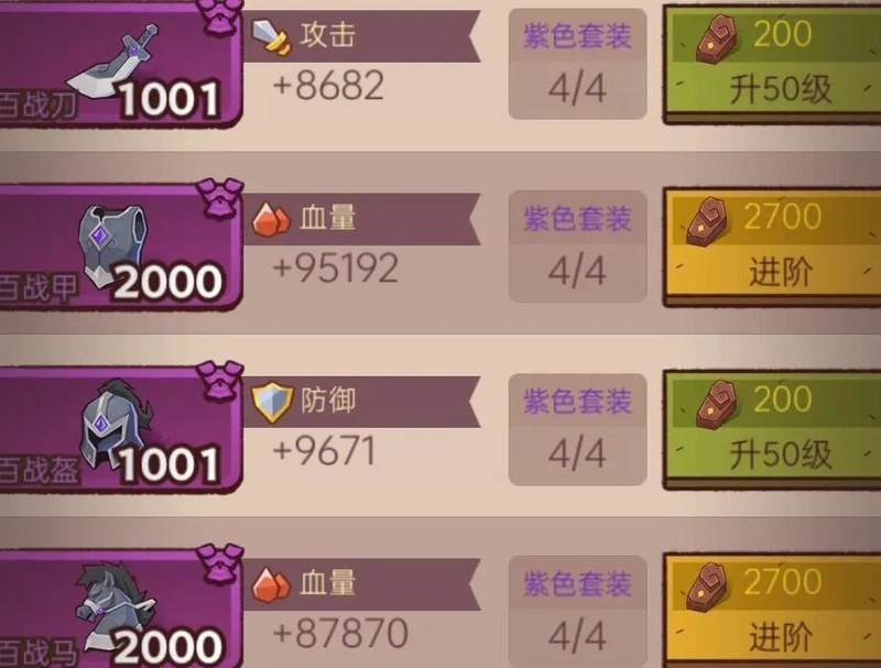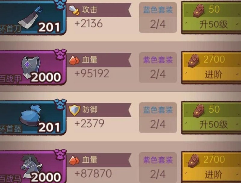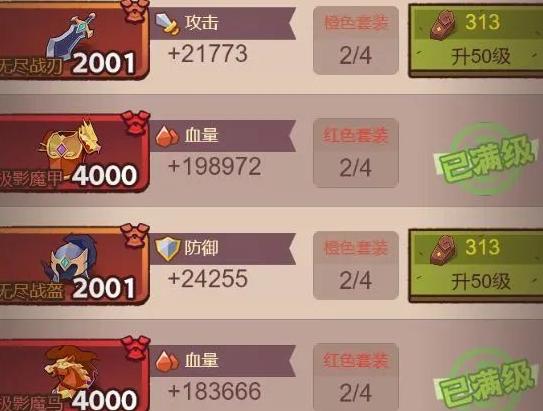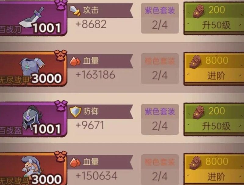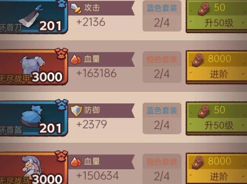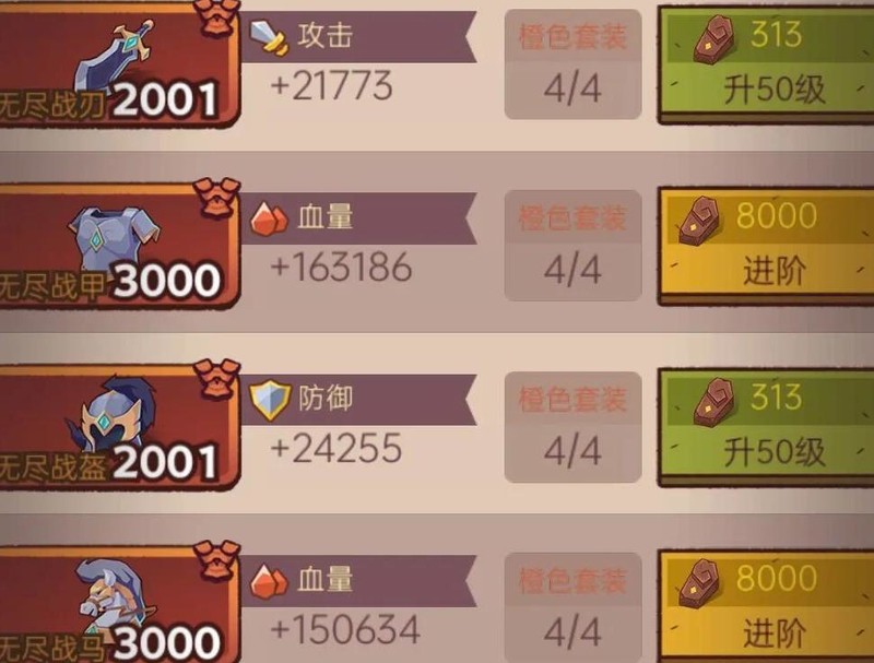 武器和两件血量装备堆满属性,防御装备只需达到同颜色最低等级即可,如武器4000、血装各4000,防御装3001即满足要求。