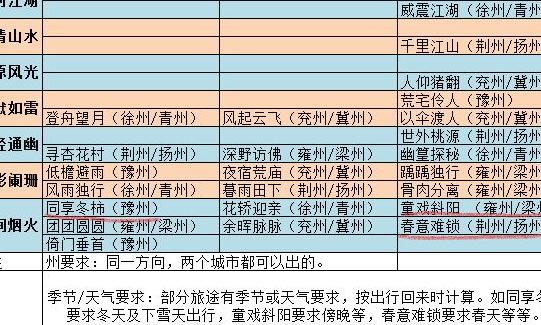 根据季节出行可获取对应稀有材料,背包界面会提示适合出行的季节。