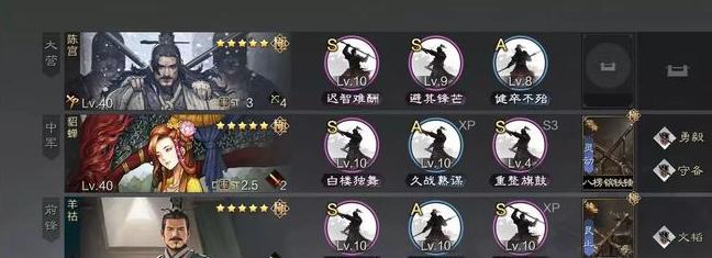 羊祜太白防御一般,建议搭配提升前排生存能力;因其后期谋略成长较高,需配合受谋略影响的策略战法,能有效发挥其输出潜力,是较为理想的选择。