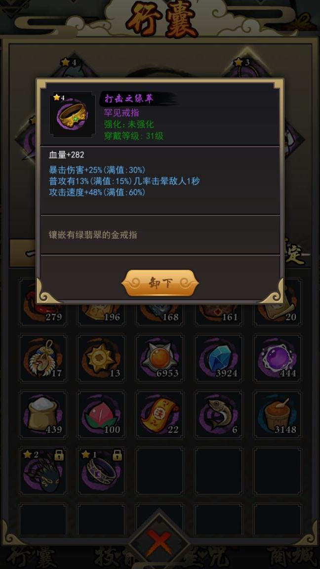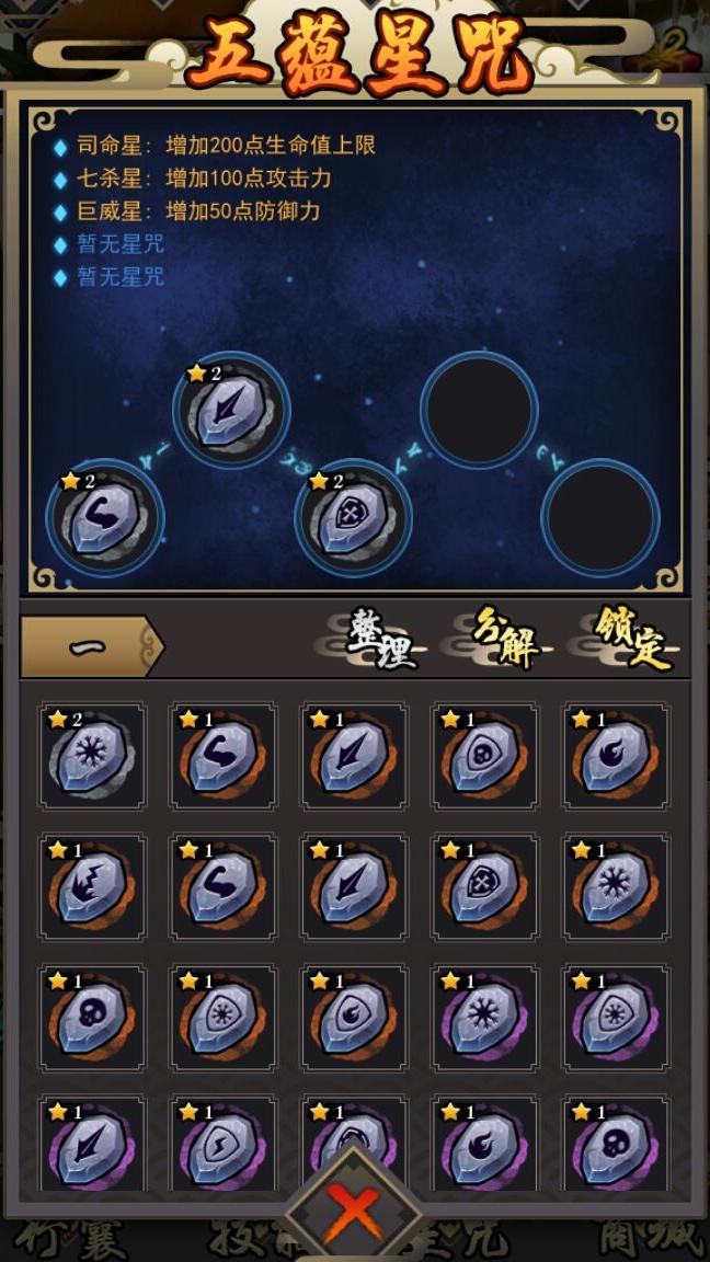 准备一件加经验的1星面具和一件加金币的1星戒指,用于地图扫荡,提升资源获取效率。