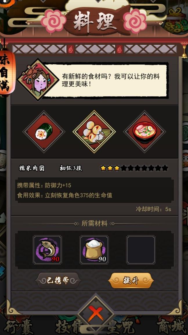 选用第二种防御料理,冷却短,可快速回血并提升防御,回复量虽小但无碍,续航仍以吸血为核心,适用于前三个章节,后续阶段建议更换为力量料理。