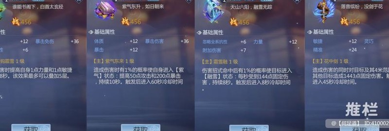 秘籍建议:太玄经、紫霞神功、天山六阳、落英神剑中优选三门修炼。