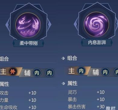秘籍搭配首选柔中带刚与内息澎湃组合