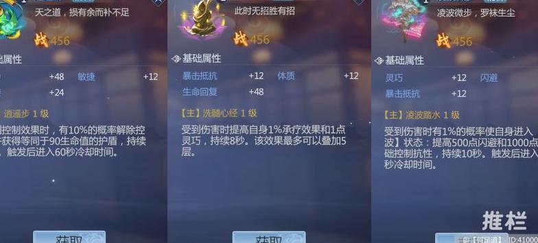 首选逍遥游、洗髓经、凌波微步三者之一,四选其三为佳。