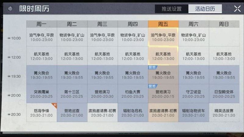 新手玩家往往不了解限时活动的具体安排,可通过日程界面左上角的闹钟和周历功能查看各项活动的开放时间,并设置手机推送提醒,确保不会遗漏任何重要活动。