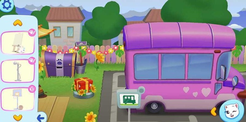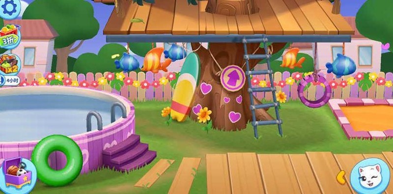 五个页面设计精巧,功能完备。包含户外树屋、沙地泳池,室内配备超大衣柜、沙发与电视,洗手间设浴缸、医药箱和马桶,花园有花圃,另有一辆可爱大巴车及隐藏的商城页面,生活设施一应俱全。