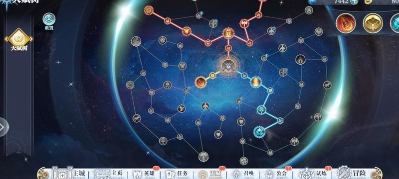 完成这三个选择后,转向冰封路线。冰封与陨石搭配效果极佳,此时主力种族塔基本可推进至20层,所选的三个主动天赋也正适合这一策略。