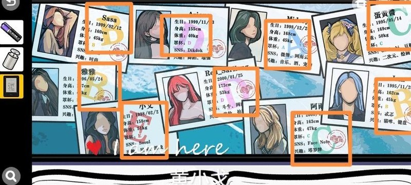 出现多张带字母的名片,注意记录各字母数量:A有1个,B有3个,C和D各2个,E有1个。