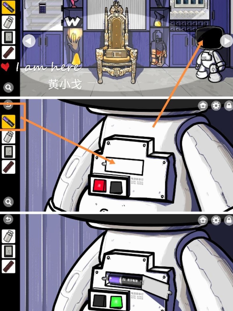 在一楼机器人所在的房间,点击宝座上的箱子,按照提示最重要的一天输入密码0517,取得照片后按下启动按钮。