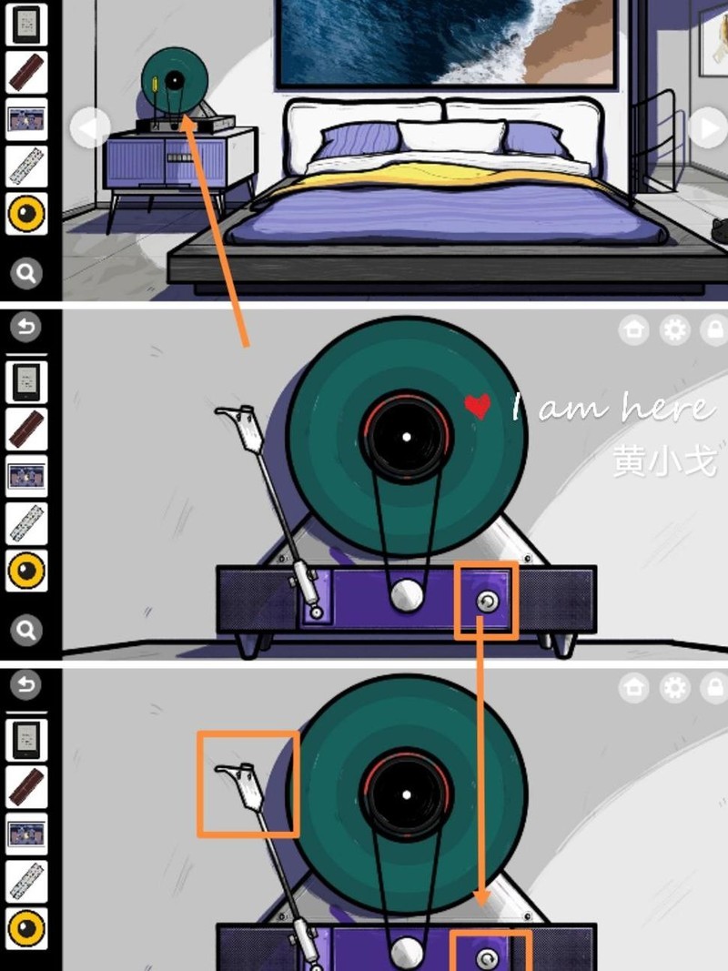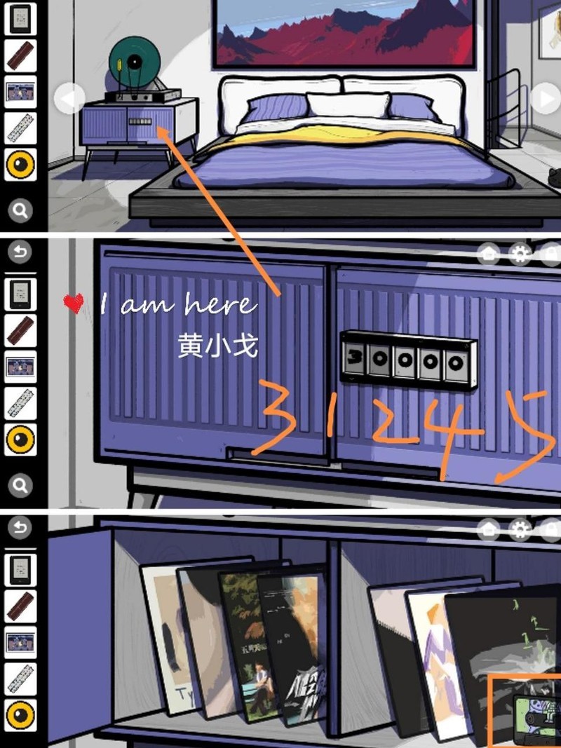 点击留声机,顺时针旋转按钮并播放,获取线索数字:31245。