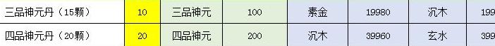 三品四品神元及魔劫材料仍有欠缺,已扣除背包存量,三品神元已成功炼制五颗。