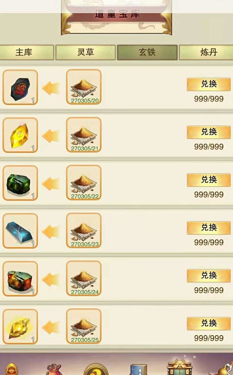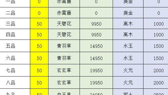 九品1至10阶天玄钢需5490,差1301,用精粹补足需12天。