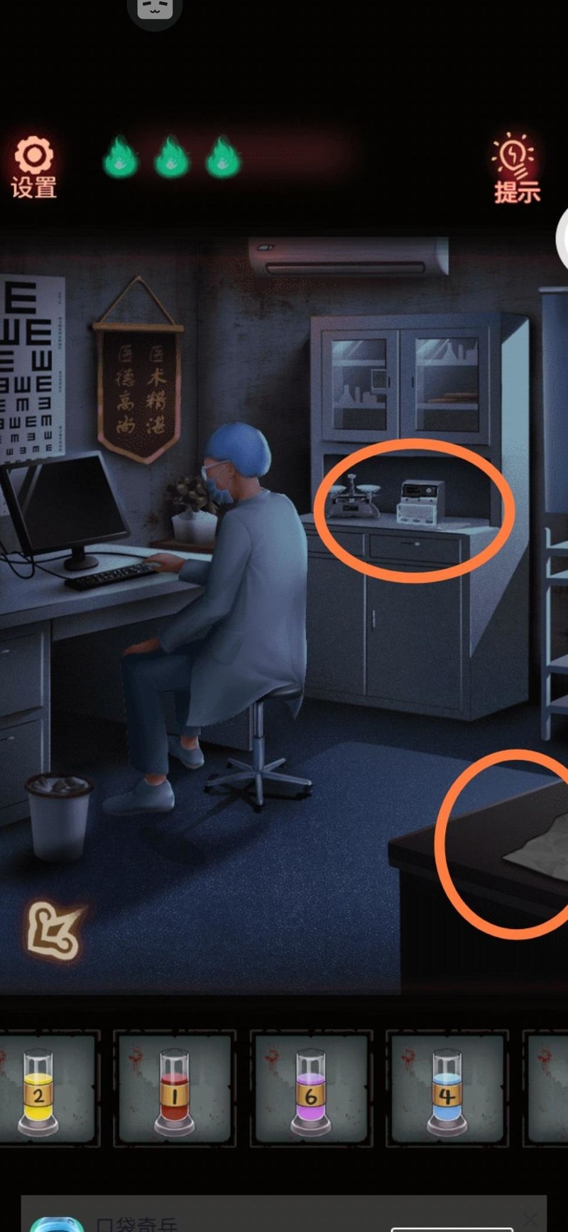 根据护士站柜中线索图所示顺序输入密码,即可开启医生办公室。