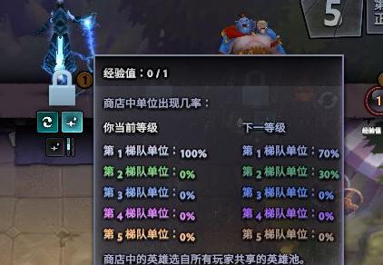 等级提升后,紫色与橙色棋子的出现概率随之增加,将鼠标移至升级按钮即可查看具体概率。