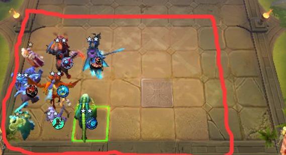 开战前选择棋子时,高亮区域显示其攻击范围。若刺客初始可攻击目标,则不会直接跳向后排。