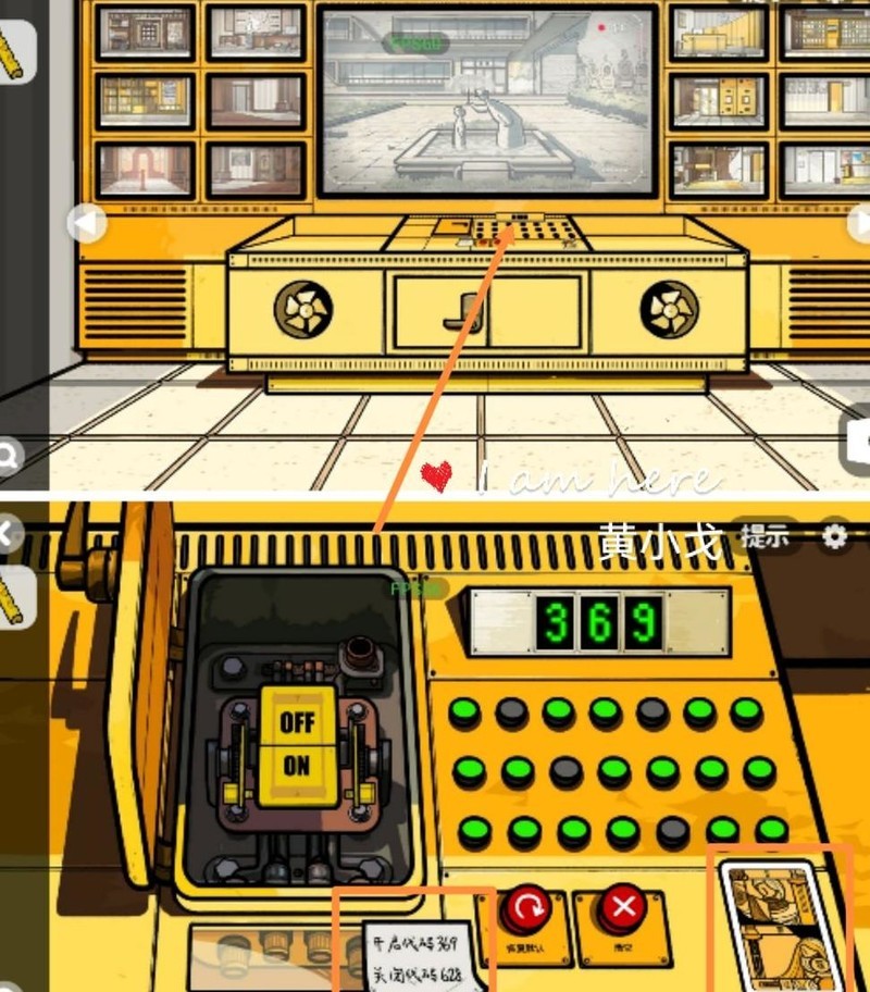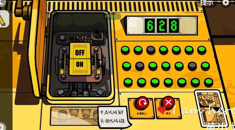 将按钮与标识牌配合使用,设置代码为628,操作方式为:第一行跳过第三个按钮,第二行跳过第二个和第六个按钮,第三行所有按钮均需按下。