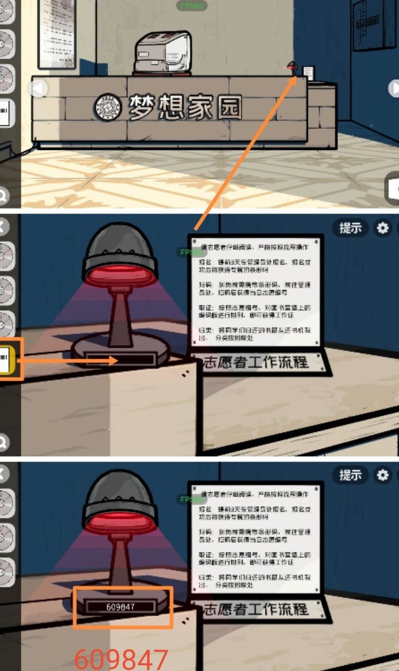 在图书馆电脑旁的机器上刷条形码,获取志愿者编号609847。