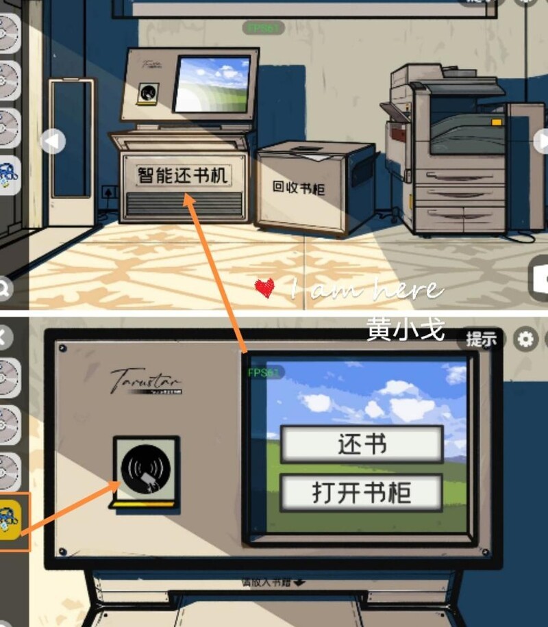 在图书馆打印机旁,使用志愿者工作证操作智能还书机。
