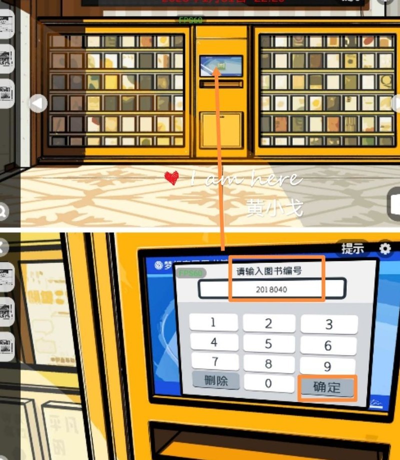 在图书馆的自动借书机上,输入编号2018040后点击确认完成借阅操作。