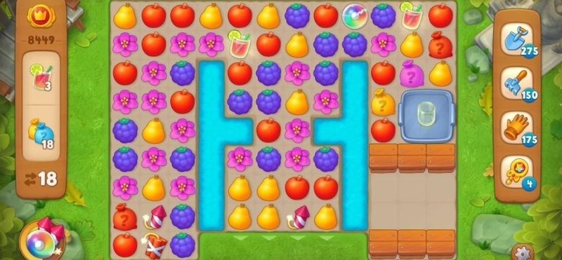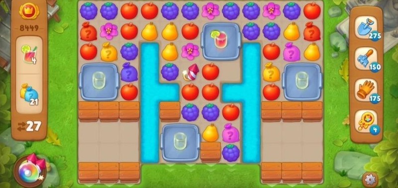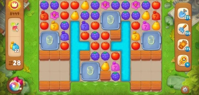 梦幻花园8449关卡来袭!目标收集柠檬水×4、神秘袋×22,仅限28步。巧妙利用元素交换,破解箱子障碍,掌握技巧轻松过关。