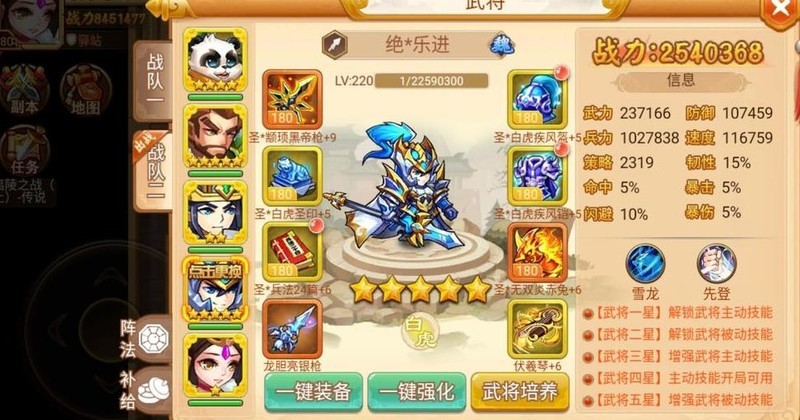 智宫与武宫搭配,以50级诸葛果为例,分两队作战:一队牺牲主将吸引火力,另一队负责收割残局。因此拆分为两个视频展示。其中二队采用赵云尾速阵容,貂蝉吕布可替换,建议带1个闪避,若熊猫在则配置三速更佳。