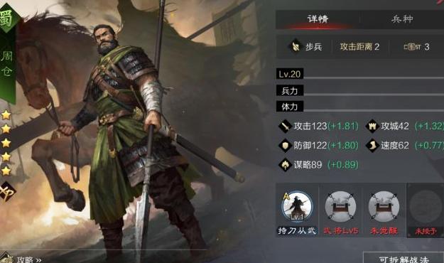 蜀国步兵将领周仓,攻击距离仅为2。在蜀国步兵中,赵云、关羽、张飞、庞统等人皆以卓越属性著称,相比之下,周仓的表现显得平庸,加之战法威力不足,整体实力略显逊色。