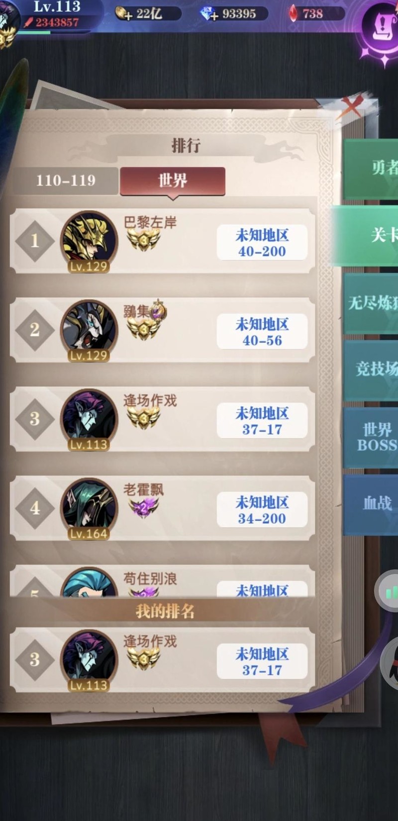 此账号为后期重新开始游玩,0转阶段前五位毕业,1转过程较为辛苦未能完成毕业,2转耗时17天达124级,全区第三名完成。本区第三个3转比前两位晚一周左右。35图之前卡点较少,未留作业;35图之后怪物属性显著提升,角色等级偏低导致属性略显不足。(作业详见下楼)