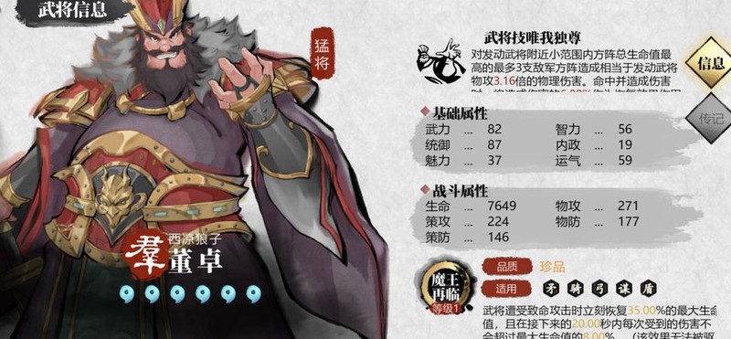 董卓,防御型盾将,四星评级,擅长坚守与抗压。