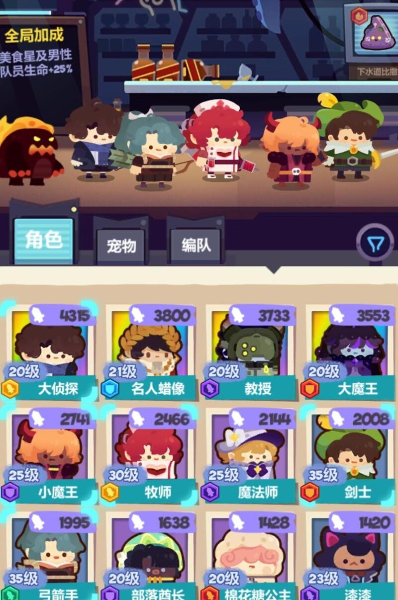 在没有大魔王和牧师的情况下,结合当前状况整理了本周数据。阵容基本沿用原攻略培养的角色,目前多数已处于闲置状态,未作过多调整。