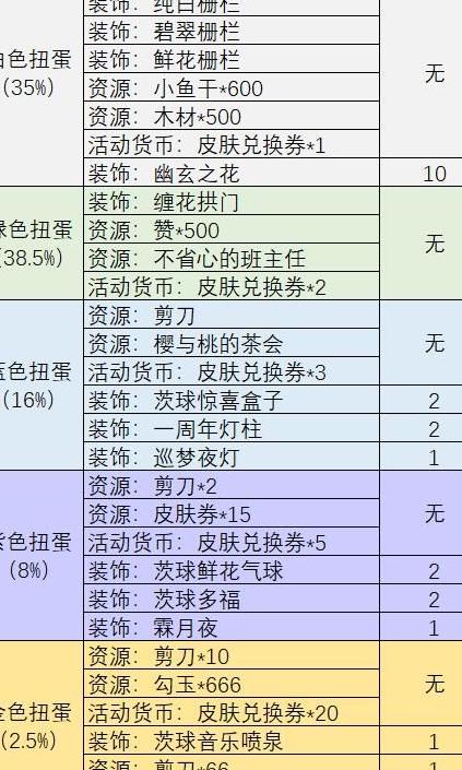 首次登录游戏时,系统将赠送一张扭蛋券,家主还可于杂货店购得60张。依据概率估算,可获得约21个白色、23个绿色、9个蓝色、4个紫色及1至2个金色扭蛋,同时还将额外获取61枚「扭蛋币」。