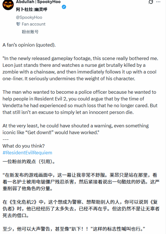 这一画面迅速引发玩家群体对角色塑造的广泛讨论。作为贯穿系列成长至今的核心人物,里昂始终以守护他人、直面险境的坚定意志为人熟知。他数十年来在灾难中奔走救援的身影,早已成为玩家心中不可动摇的精神坐标。正因如此,此次他面对暴行却未出手的举动,令许多长期追随该系列的玩家感到愕然与不安。