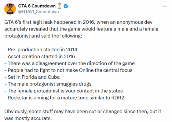 近日,关于GTA6的早期爆料信息再次引发玩家群体的广泛关注。一名长期追踪该作动态的知名信息整理者指出,目前已知最早一批可信度较高的内部消息,实际上可追溯至2016年。