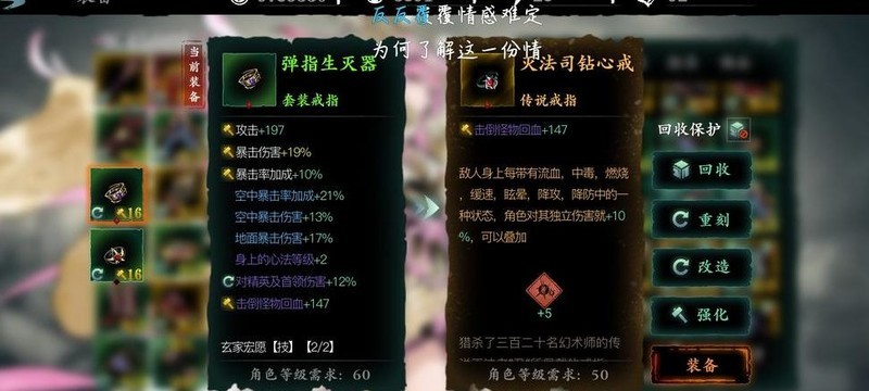 在一手遮天绝技配合魔爪使用时,可降低敌人攻防并触发钻心戒效果,但仅生效一次,原因尚不明确。第三位蛇女的中毒状态能稳定激活钻心戒,机制清晰易懂。第四位万魔需以武器刻印冰山之种+5为前提,若无此条件,建议替换为永夜;永夜的减速绝技可触发钻心戒,若有冰山提供的减速效果,则无需永夜,直接选用万魔以提升攻击力更为合适。
