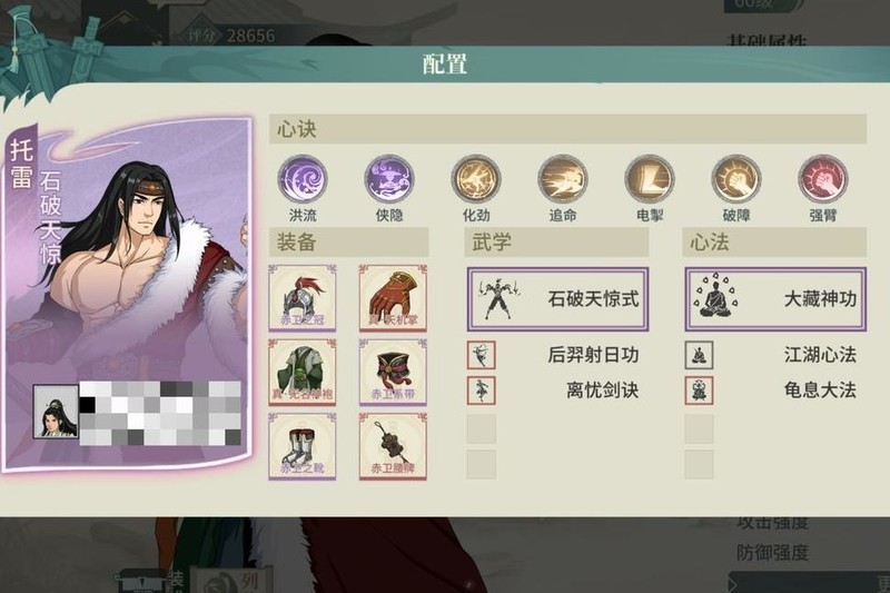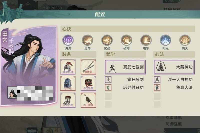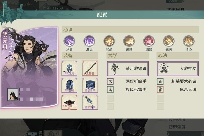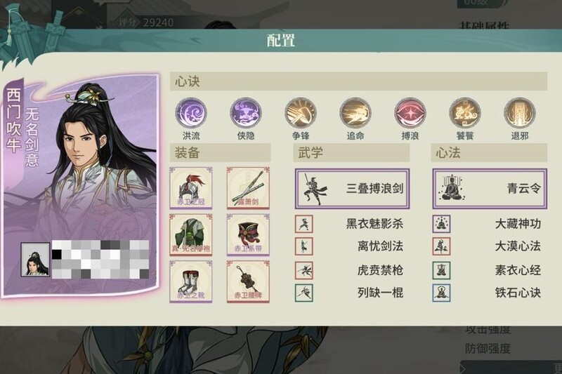心决搭配上必选的洪流,结合赤卫套提供的高额暴击率,能频繁触发剑气造成爆发伤害。侠影增强主角生存能力,争锋、追命、退邪均为核心选择。选用搏浪心决,是因气宗回蓝减半,需保障蓝量充足。舍弃破障而选择饕餮,源于气宗本身具备真实伤害剑气,对破障依赖较低;饕餮不仅能提供护盾,还可提升武学突破被动中的技能威力,兼具防御与输出增益。未采用冲霄与气碾,是为追求更稳定的输出环境,降低伤害波动,确保战斗中持续高效发挥,整体配置注重续航、生存与伤害稳定性,形成全面而坚实的作战体系。