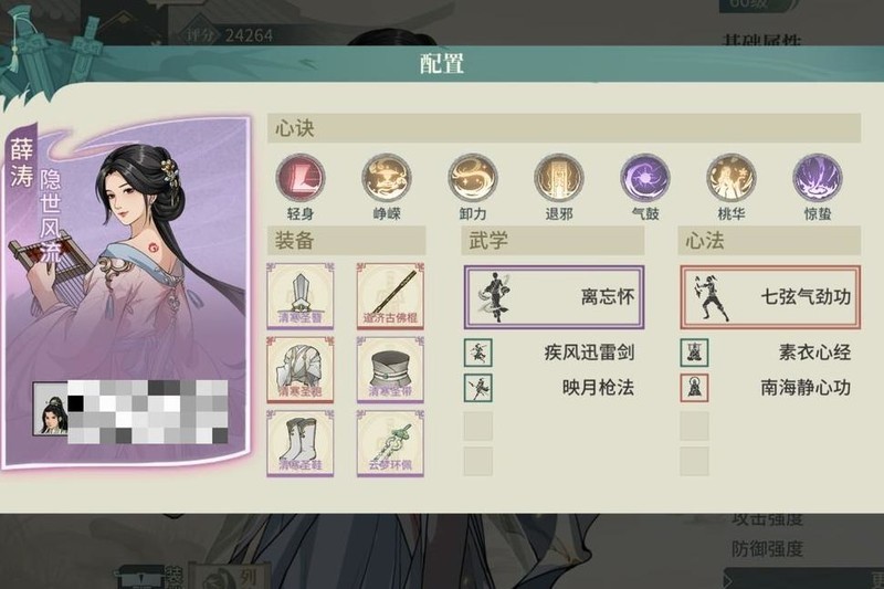 通过搭配大清寒装备与特定饰品,配合轻身术、洞庭枪和迅雷剑,可将集气提升至2.5。薛涛在减伤方面已达标,考虑到气宗对闪避型敌人乏力,因此洗练时选择主堆根骨并兼顾悟性,确保悟性超过60,使三技能提供的精准等级达到5级,从而有效应对高闪避目标,增强输出稳定性。