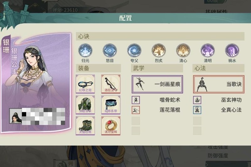 唐婉流放表现亮眼,暴击伤害可观,常用于抢刀阵容搭配魔侠客,其心诀控制能力强,实战效果出色,远超替补水准。明无月新列传已出第二本天风剑,建议及时获取,洗练推荐双身法,技能释放顺序为42351。
