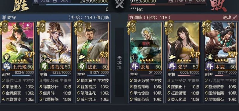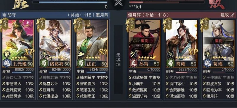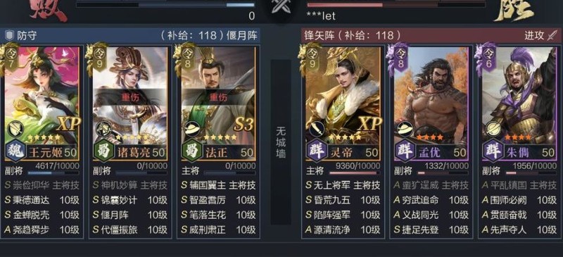 诸葛亮智力成长突出,但输出能力较弱,搭配王元姬技能仅对单体生效的特点,更适合定位为前排承伤与续航角色。通过偃月阵提供的防御与闪避加成,结合自身抵挡机制及代僵振旅的回复效果,可大幅提升其生存能力,使其在前线稳定承担伤害并持续恢复,具备极强的战场耐久性。