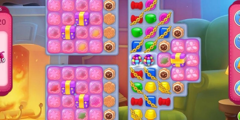 关卡分为左上、左下和右侧三大区域,其中左侧两部分无法直接进行消除操作,导致苹果只能远观而难以触碰。棋盘中还散布着饼干与果冻等障碍物,进一步限制了可移动元素的数量,整体布局十分紧凑。面对这种局面,建议优先清理障碍,打通区域间的连接路径。操作时需谨慎规划步数,尽量通过组合消除引发连锁反应。值得注意的是,本关无需使用任何道具,依靠精准的策略即可顺利通关。
