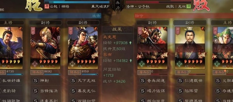 使用太史慈搭配当锋的骑兵,对阵太尉盾可轻松低损取胜。